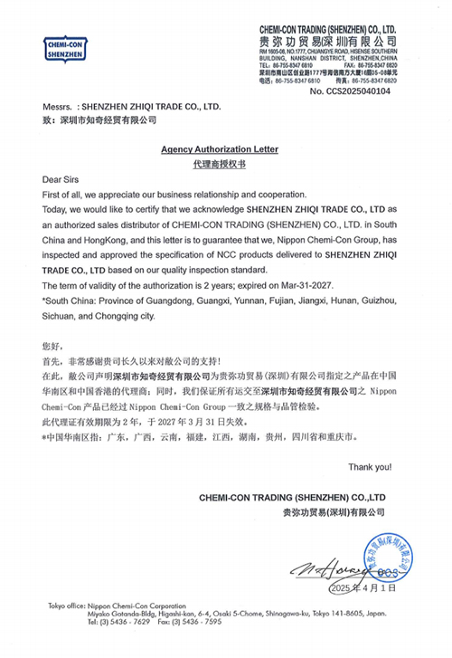 日本黑金剛(NIPPON CHEMI-CON)電容、韓國三瑩(SAMYOUNG)電容、東陽光(HEC)電容、凱美(KAMCAP)超級(jí)電容、成鎬薄膜電容、泰容薄膜電容、貝特保險(xiǎn)管、大毅電阻、天二特殊電阻、CROWN散熱風(fēng)扇等多家國內(nèi)外知名品牌一級(jí)代理及華南區(qū)域總代理授權(quán)。
